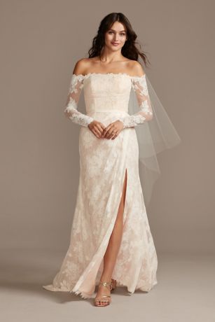 Long Sleeve Off The Shoulder Trumpet Wedding Dress David S Bridal